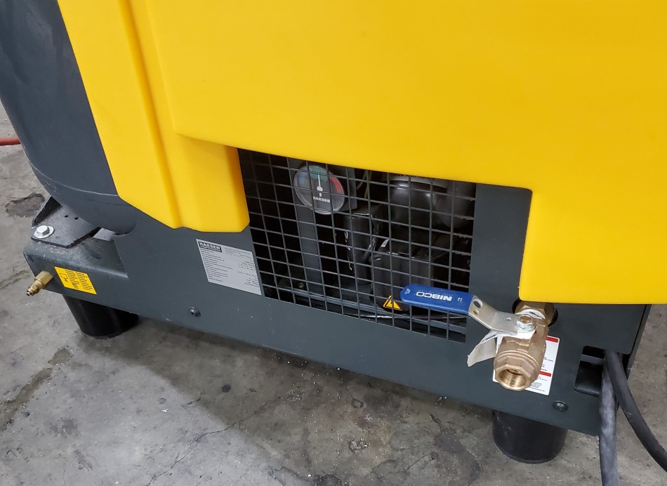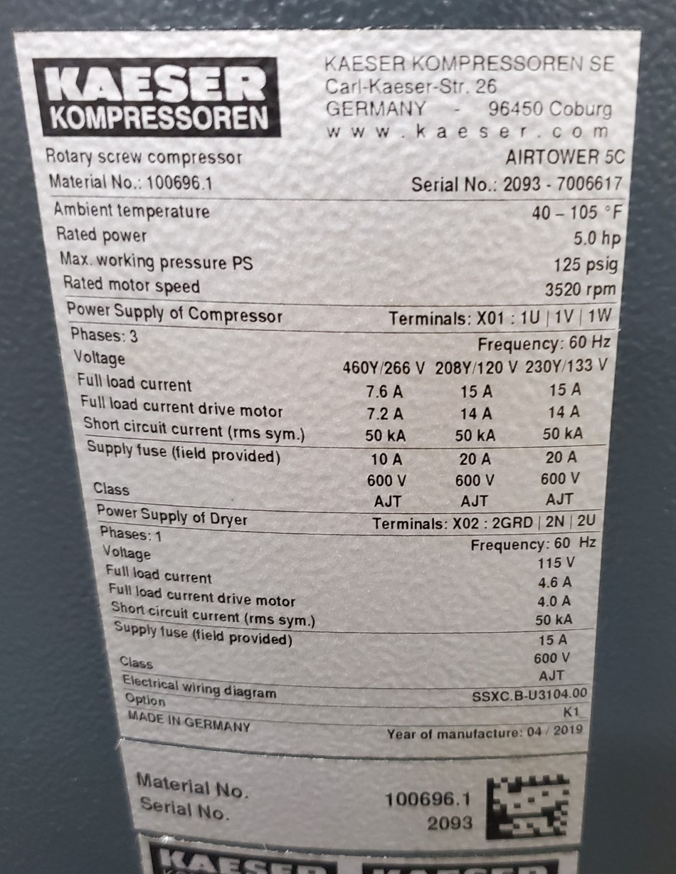 * Energy efficiency and easy-to-service design of Kaeser industrial rotary screw compressors with a storage tank and dryer