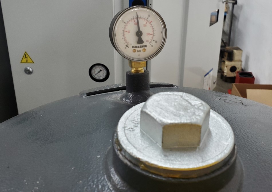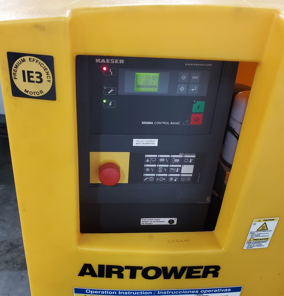 * Energy efficiency and easy-to-service design of Kaeser industrial rotary screw compressors with a storage tank and dryer