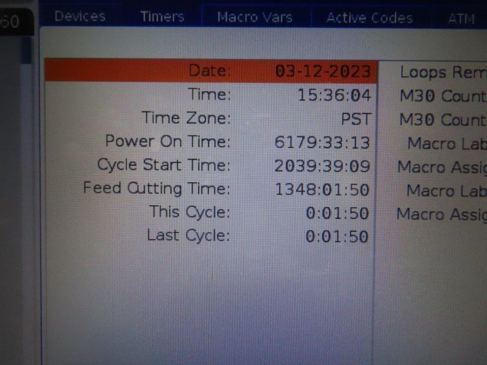 - HOURS. Power On: 6179. Cycle Start: 2039. Feed Cutting: 1348.